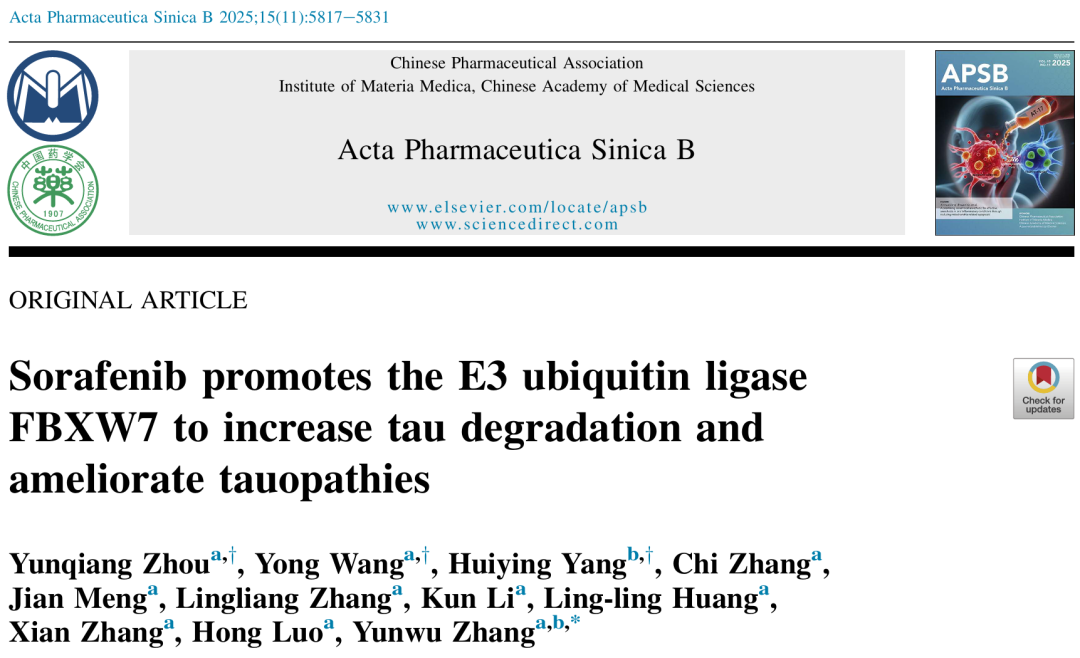 索拉非尼通過促進(jìn)E3泛素連接酶FBXW7增強(qiáng)tau蛋白降解并改善tau蛋白病變